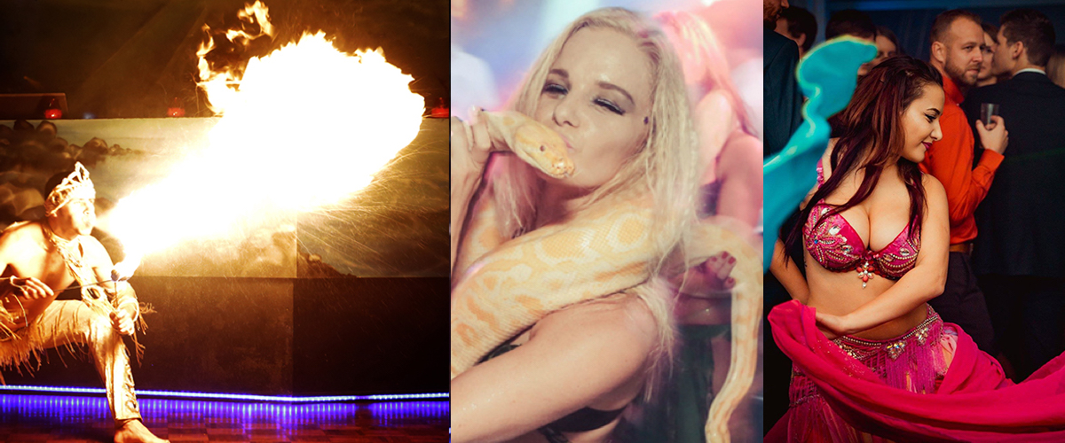 (klassieke buikdans, IsisWings buikdans, dansen op gebroken glas, vuurspuwen)
